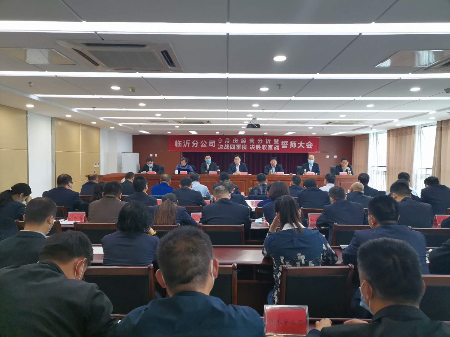 本網(wǎng)訊 10月13日,臨沂分公司召開(kāi)9月經(jīng)分會(huì)暨“決戰(zhàn)四季度 決勝收官戰(zhàn)”誓師大會(huì),深入分析公司前三季度形勢(shì),研究部署下一階段重點(diǎn)工作,進(jìn)一步動(dòng)員公司上下明確目標(biāo)定位,堅(jiān)定必勝信心,決戰(zhàn)四季度,決勝收官戰(zhàn),確保全面完成年度任務(wù)目標(biāo)。
